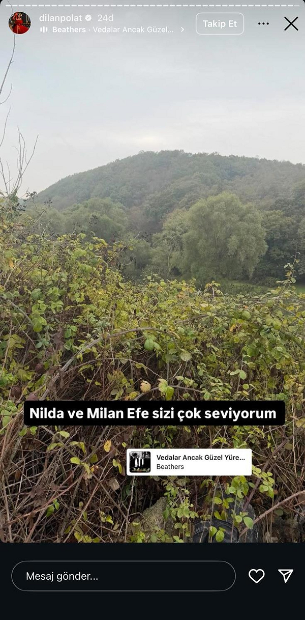Polat, çocukları Milan Efe ve Nilda’ya veda ettiği düşünülen bir paylaşım yaptı. Paylaşımında ‘Nilda ve Milan Efe sizi çok seviyorum.’ ifadelerine yer verdi. Dilan Polat hemen ardından paylaşımını sildi.