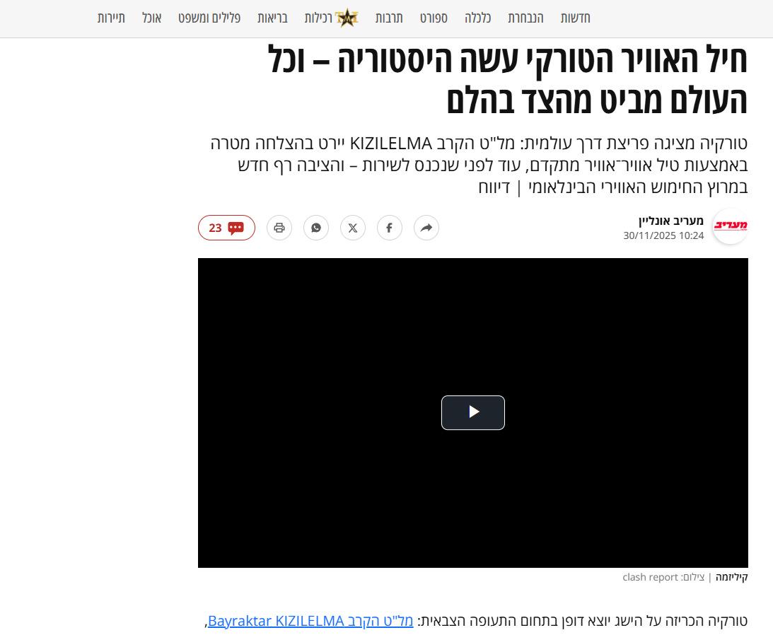 Bu gelişmenin ardından İsrail medyasında çarpıcı bir analiz kaleme alındı. Maariv gazetesi, “Türk Hava Kuvvetleri tarih yazdı ve tüm dünya şaşkınlıkla izliyor.” başlıklı haberinde, “Türkiye semalarında tarih yazıldı; dünya ordularının sadece hayalini kurabildiği bir müdahale/önleme, bir İHA tarafından gerçekleştirildi.” denildi.